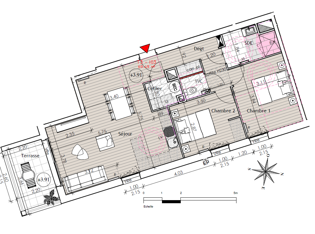 69.50m²+1 terrasse de 7.95m²